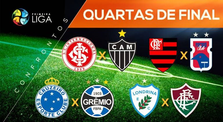A Primeira Liga sorteou nesta segunda-feira (5) os confrontos das quartas de final da competição: Cruzeiro-MG X Grêmio-RS, Internacional-RS X Atlético-MG, Flamengo-RJ X Paraná Clube-PR e Londrina-PR X Fluminense-RJ serão realizados nos dias 29 e 30 de agosto, mas os…